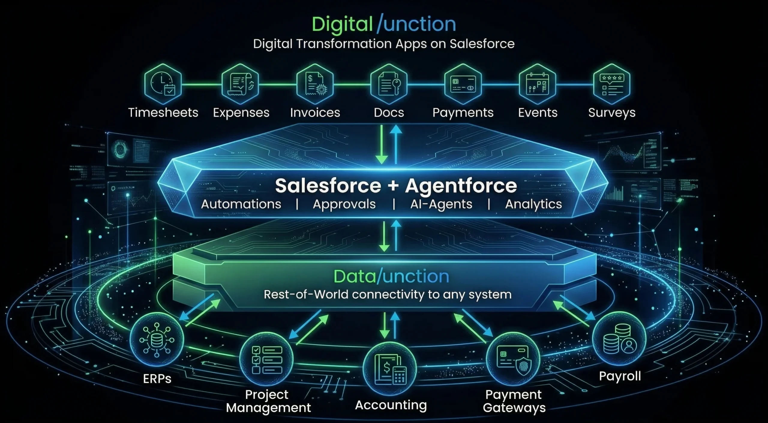 Meet your customers digital transformation and integration needs by leveraging Salesforce as a multi-purpose Swiss-Army-knife Cloud with affordable Salesforce-native apps from CloudJunction.